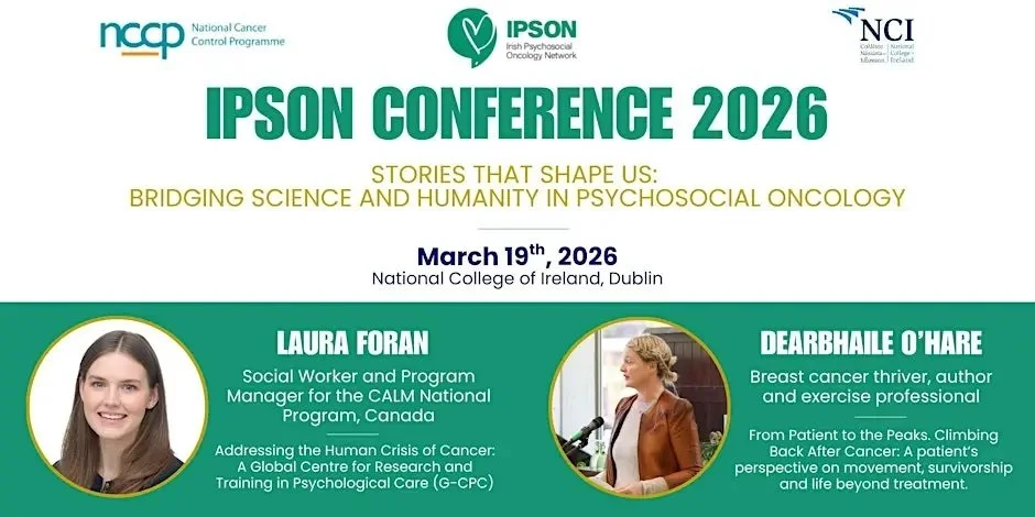 IPSON’s third annual conference will take place on Thursday, March 19th. It will be a dynamic daylong event at the National College of Ireland (NCI) in Dublin. The theme of the conference is "Stories That Shape Us: Bridging Science and Humanity in Psychosocial Oncology". The comprehensive conference programme includes keynote talks, panel discussions and academic poster viewing sessions.